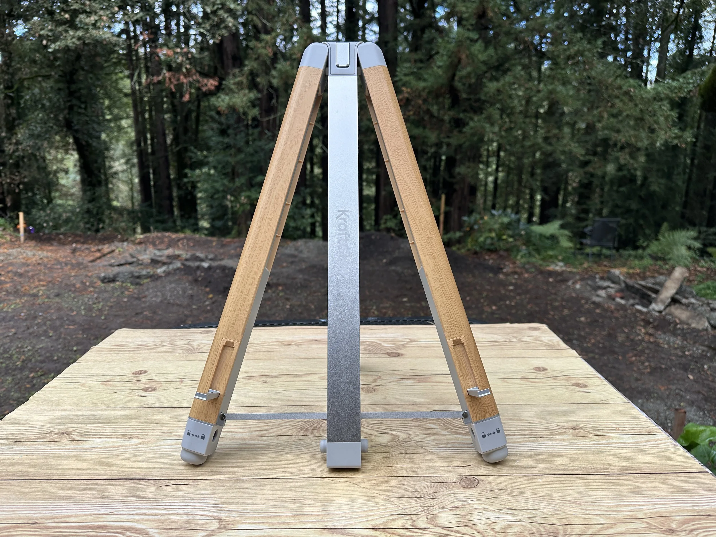 The KraftGeek Inspire Easel is light, sleek, and folds up like origami.
