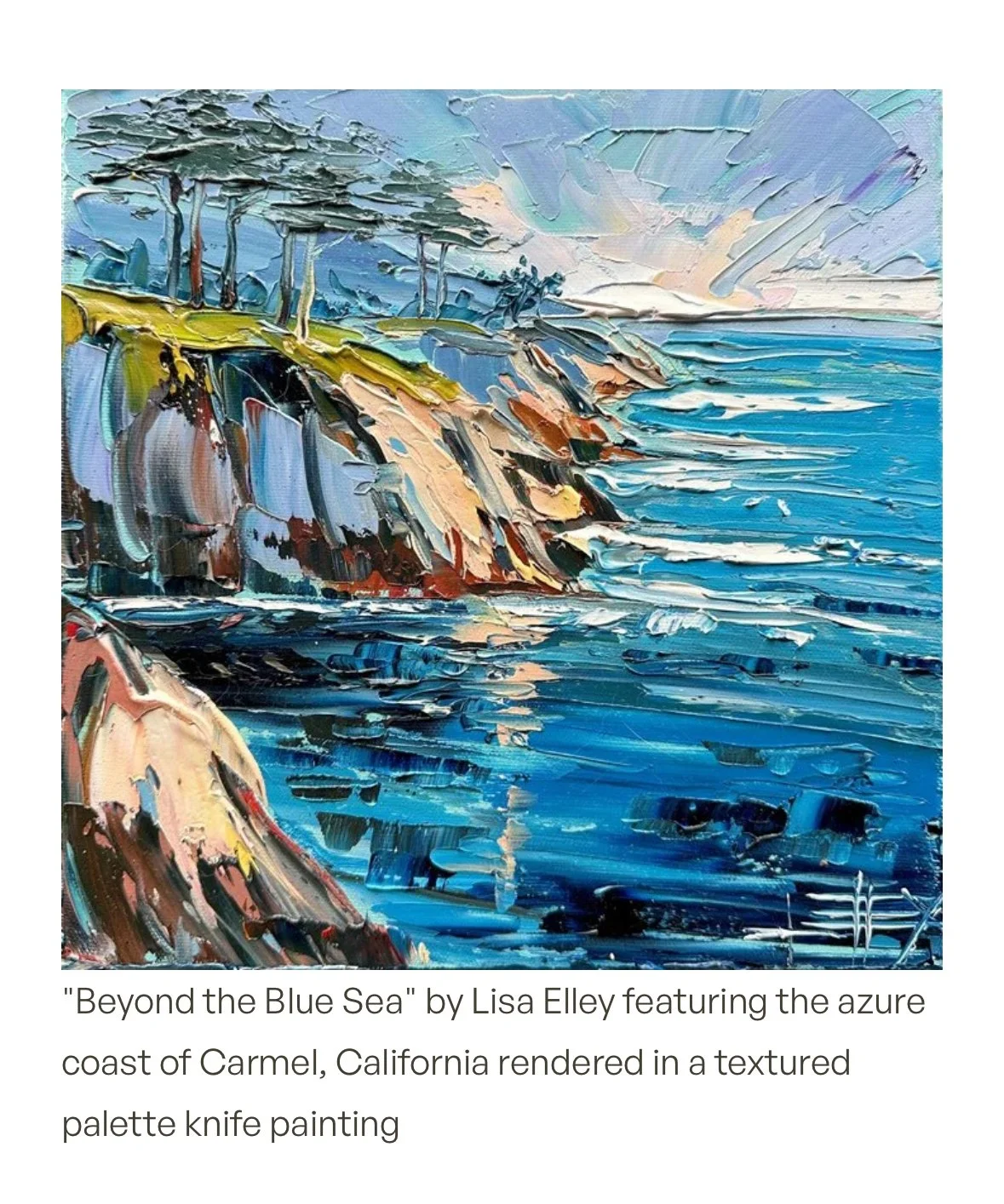 The interview touches on many parts of my process, my palette-knife technique, my love of California landscapes, my travels, and the way texture has become my primary language. But what is subtext, is the quiet, unglamorous consistency behind the scenes.