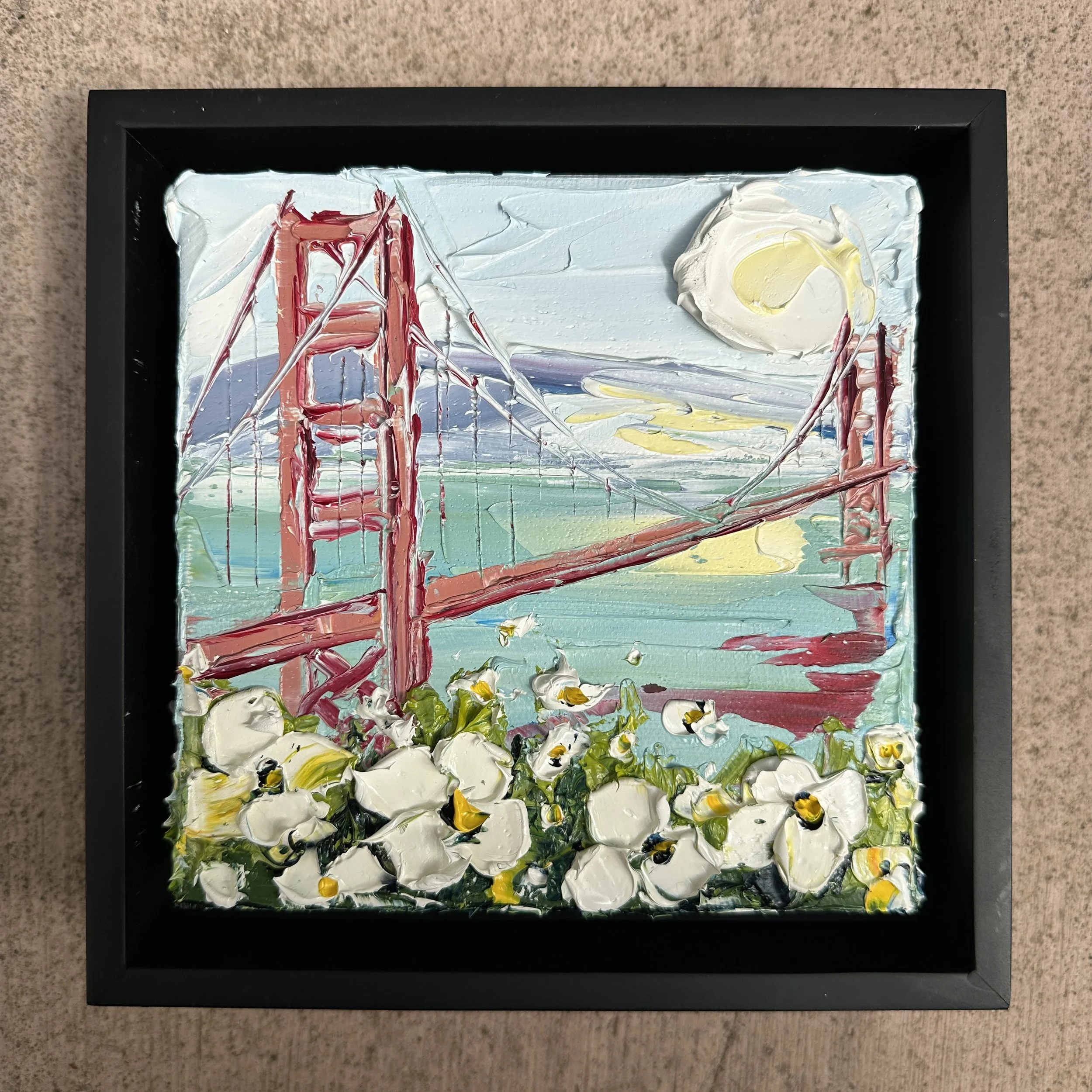 Categories: All Minis Little Italies Coastal Light Plein Air Portals Studio Collection Floral Atmospheres All / Desert Bloom $225.00 Sherbet Sunset $225.00 Golden Gate in Bloom $275.00 Golden Pulse $195.00 Golden Light $195.00 Poppy Blaze $195.00 Oceanlight Reverie $395.00 Intrepid Solo $495.00 Intrepid Trio $495.00